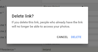 But it also works later on: if you have the same photos selected and choose to get the shareable link again, you will get the same link - and you may delete it instead.